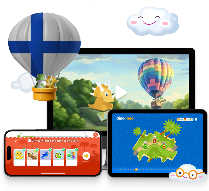 With Dinolingo, your child can enjoy Finnish through videos, games, songs, worksheets, and interactive stories. Designed for ages 2–14, Dinolingo is available on the web, iOS, and Android, and supports learning with rewards, offline materials, and a parent dashboard. It’s a fun, structured, and flexible system trusted by families around the world.