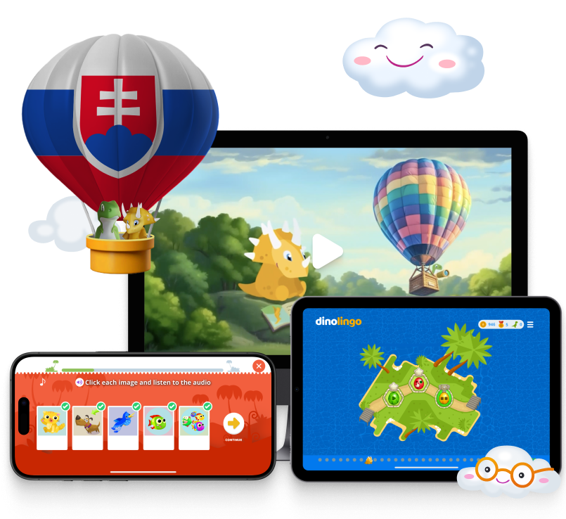 Try Dinolingo for fun, engaging Slovak lessons online. With games, songs, videos, stories, and worksheets, Dinolingo helps children ages 2–14 learn Slovak at their own pace. It’s a great way to build vocabulary and confidence while having fun.