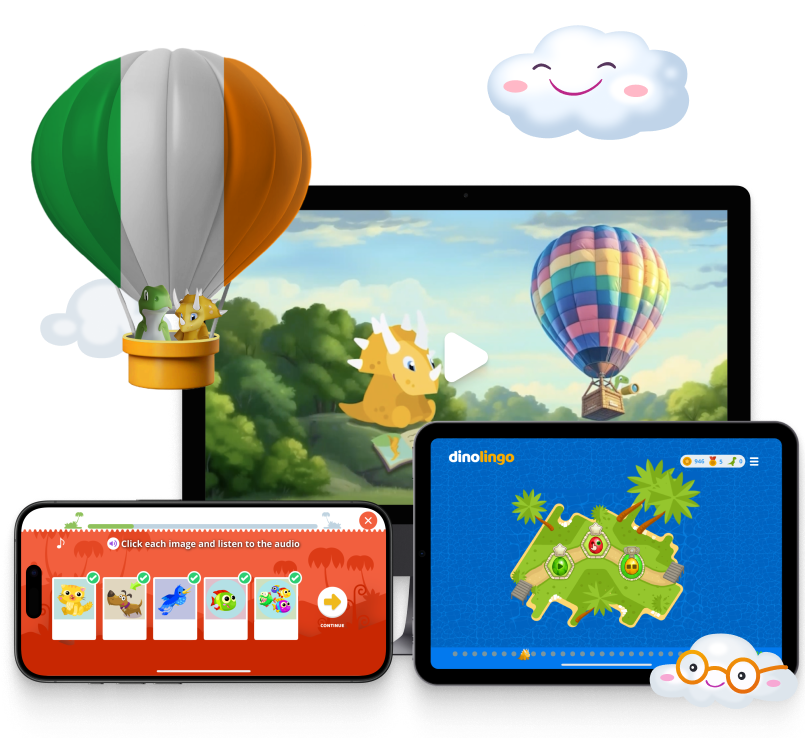 To bring Ireland into your home, kids can start learning Irish with fun lessons on Dinolingo. With songs, games, videos, stories, and worksheets, Dinolingo helps children learn languages through playful and effective activities. Whether your child is learning Irish before a trip or just for fun, Dinolingo offers a full experience on web, iOS, and Android.